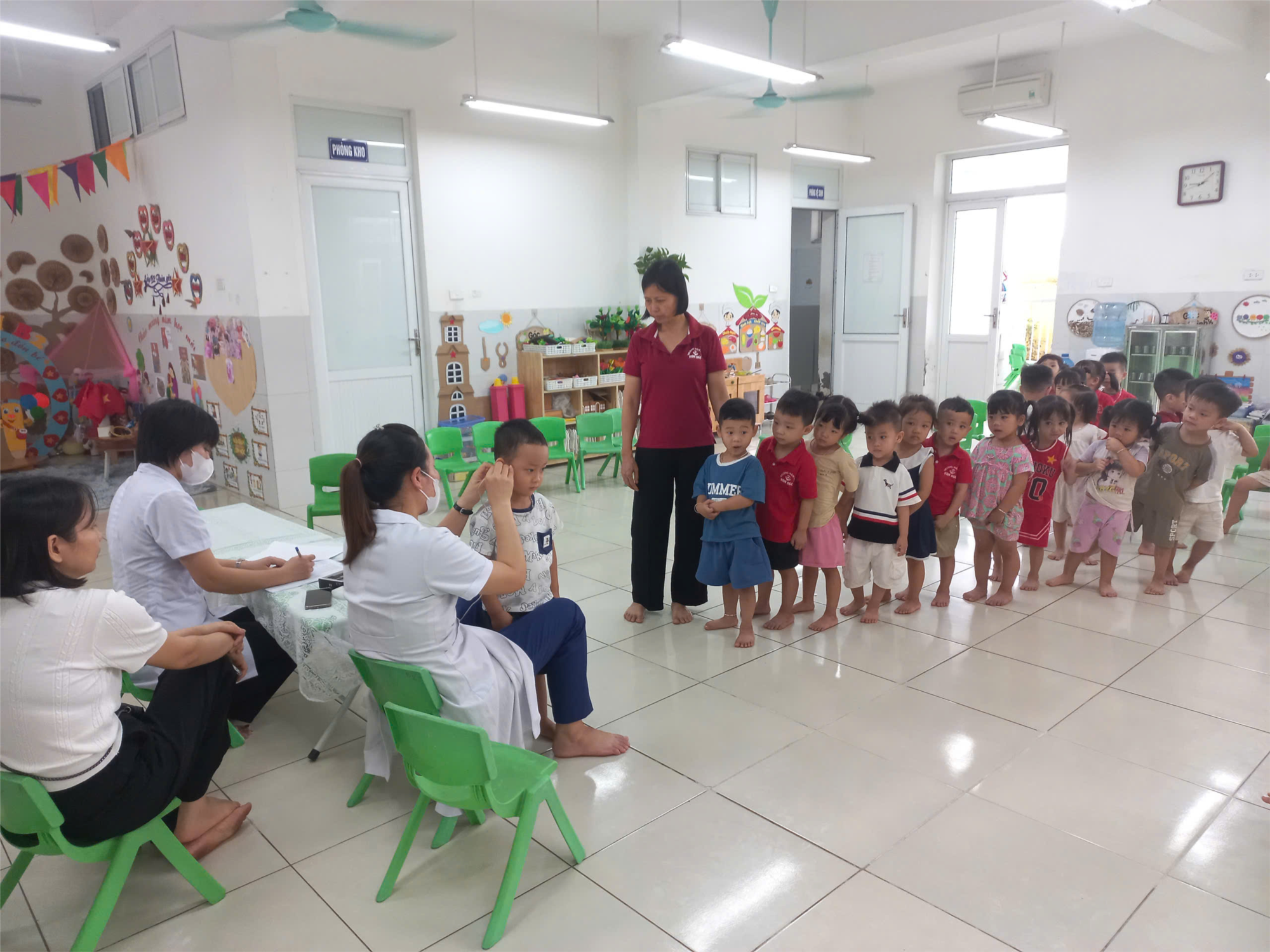 Đo tai cho trẻ ở trường mầm non giúp phát hiện sớm các vấn đề về thính lực, hỗ trợ can thiệp kịp thời để trẻ nghe, nói và học tập tốt hơn. Hoạt động này góp phần bảo vệ sức khỏe và phát triển toàn diện cho trẻ. Trẻ ngoan hợp tác với các bác sĩ đo.
