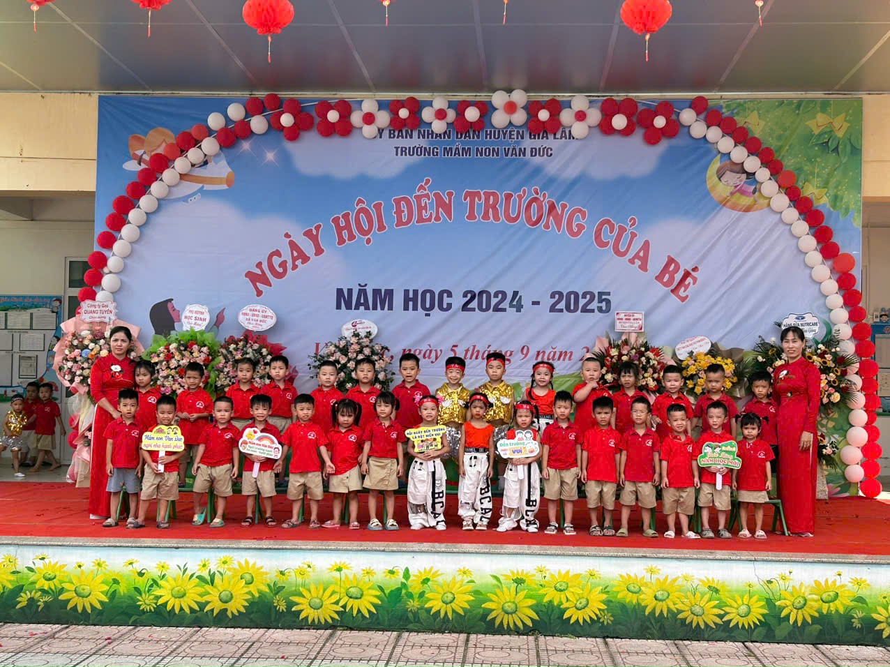 Sáng thứ năm ngày 5 tháng 9 năm 2024:Hòa chung khí thế ngày hội đến trường. Trường mầm non Văn Đức tổ chức ngày hội đến trường long trọng vui vẻ và ý nghĩa. Đến dự buổi lễ có các đồng chí lãnh đạo huyện và địa phương, các bậc phụ huynh cùng các con. Đồng chí hiệu trưởng đọc thư chúc mừng của chủ tịch nước và tuyên bố năm học mới chính thức bắt đầu. Bên cạnh đó là chương trình văn nghệ do cô và trò biểu diễn rất đặc sắc. Các bé vui vẻ được tham gia ngày hội đến trường.