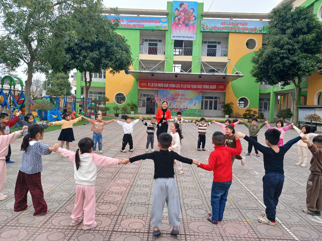 Các con còn được tham gia nhiều trò chơi vận động cùng như chơi các trò chơi tự do ngoài sân trường. Được thỏa sức vui chơi, các con cảm thấy rất vui vẻ, hào hứng khi đến lớp. Buổi hoạt động ngoài trời giúp các con phát triển thể chất cũng như rèn luyện đức tính tốt để sau này trở thành người công dân có ích cho xã hội .