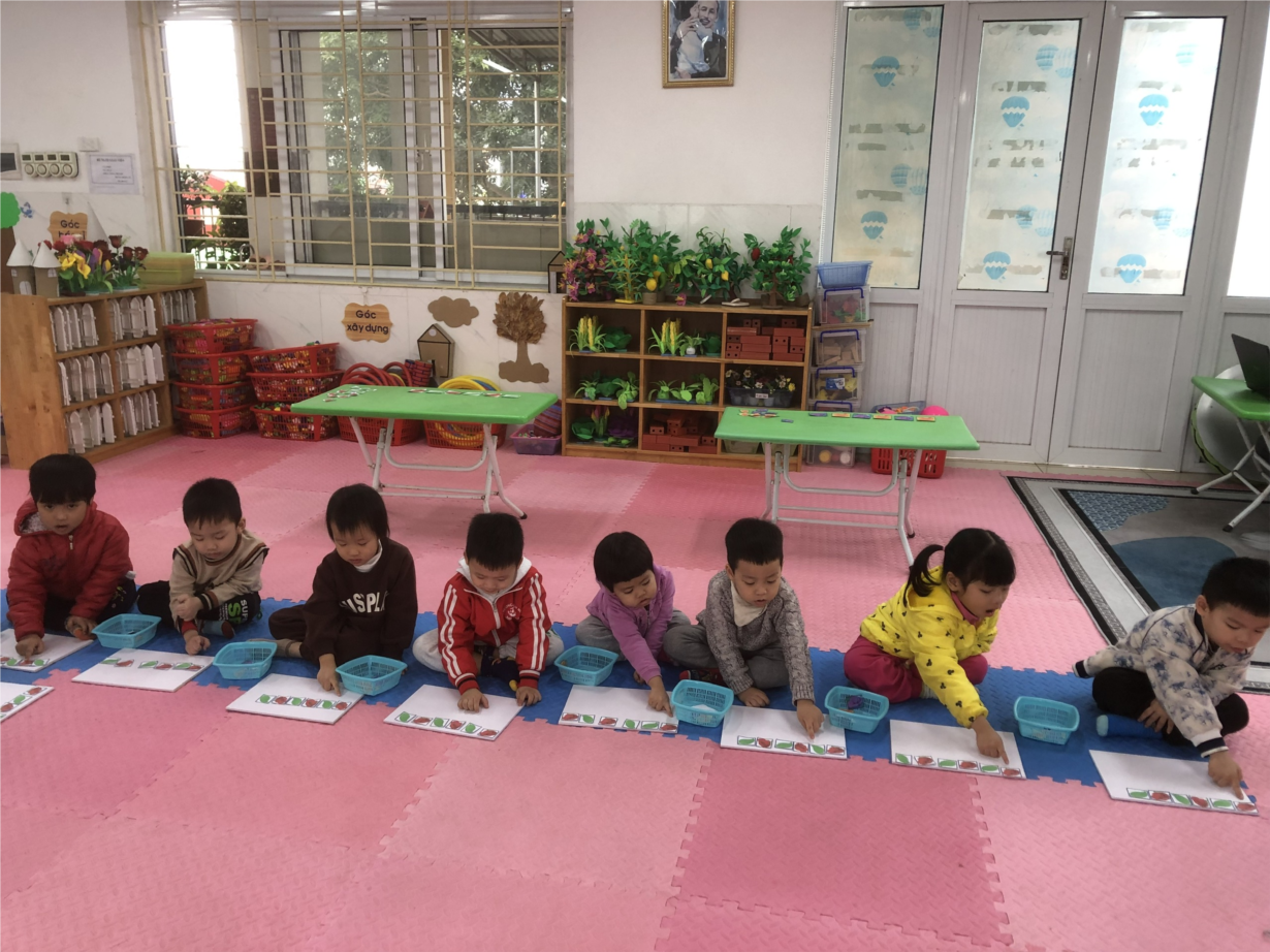 trẻ nhận ra cách sắp xếp 2 đối tượng theo quy tắc hoa-lá và biết cách sắp xếp 2 đối tượng theo quy tắc 1-1.