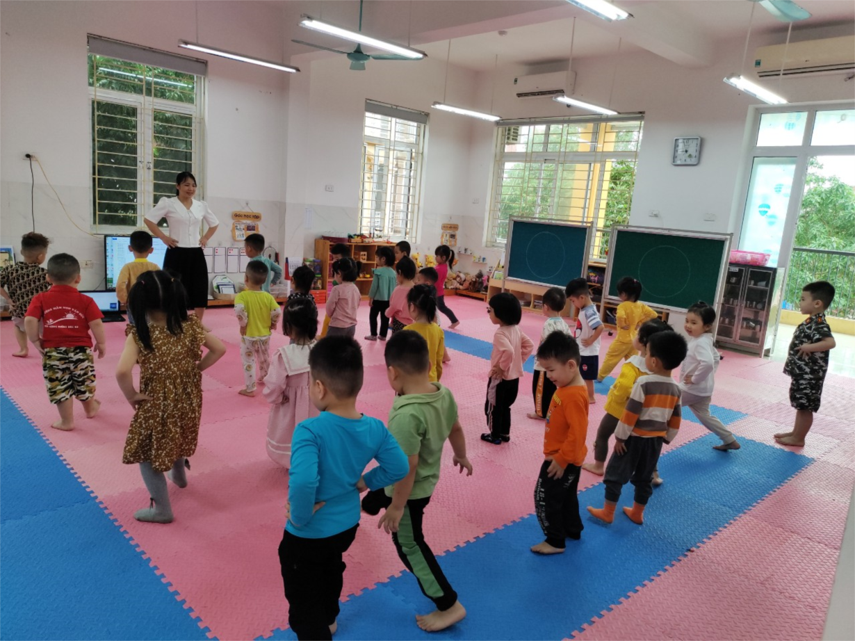 Phát triển thể chất là một trong năm mặt phát triển toàn diện cho trẻ ở trường mầm non, chúng ta có thể khẳng định rằng một cơ thể khoẻ mạnh luôn là tiền đề cho mọi tài năng.Trong quá trình tham gia các vận động trẻ còn được phát triển thêm cả về mặt tình cảm - xã hội cũng như thẩm mỹ. Hoạt động thể chất làm thoả mãn nhu cầu vận động của trẻ tạo cho tinh thần trẻ được sảng khoái, vui vẻ, giúp phát triển mối quan hệ giữa cô và trẻ cũng như phát triển tốt mối quan hệ bạn bè trong phối hợp vận động cùng các bạn. Cơ thể khoẻ mạnh, phát triển cân đối, hài hoà là một biểu hiện của nét đẹp về hình thể, những bài tập vận động có nhịp điệu. Kết hợp với âm nhạc giúp trẻ cảm nhận được sâu sắc về nhịp điệu, thể hiện tốt hơn, đẹp hơn các động tác và nhất là các hoạt động phát triển các cử động bàn tay, ngón tay giúp phát triển các vận động tinh tế khéo léo. Nhưng trên thực tế trong các trường mầm non nói chung và trường mầm non Hoàng Đan nói riêng, việc cho trẻ hoạt động phát triển thể chất chưa làm được điều đó. Các hoạt động tổ chức giáo dục phát triển thể chất cũng chỉ gói gọn theo giáo trình cũ không kích thích được tính tích cực chủ động của trẻ, hình thức tổ chức chưa sáng tạo hấp dẫn, dẫn đến hoạt động chưa đạt hiệu quả cao, trẻ chưa hứng thú tham gia vào các hoạt động. Bên cạnh đó ngày nay các bậc phụ huynh có xu hướng sợ con em mình bị va chạm, tổn thương khi tham gia các vận động nên thường hạn chế cho trẻ vận động, để trẻ chơi với các thiết bị điện tử. Những điều này đã và đang ảnh hưởng trực tiếp đến sự phát triển thể chất và tinh thần của trẻ. Vậy làm thế nào để thay đổi được nhận thức của phụ huynh về vấn đề phát triển sức khoẻ cho trẻ thông qua các hoạt động? Làm thế nào để có những phương pháp tổ chức phát triển vận động cho trẻ tốt hơn để mang đến cho các em một thể lực phát triển cân đối?