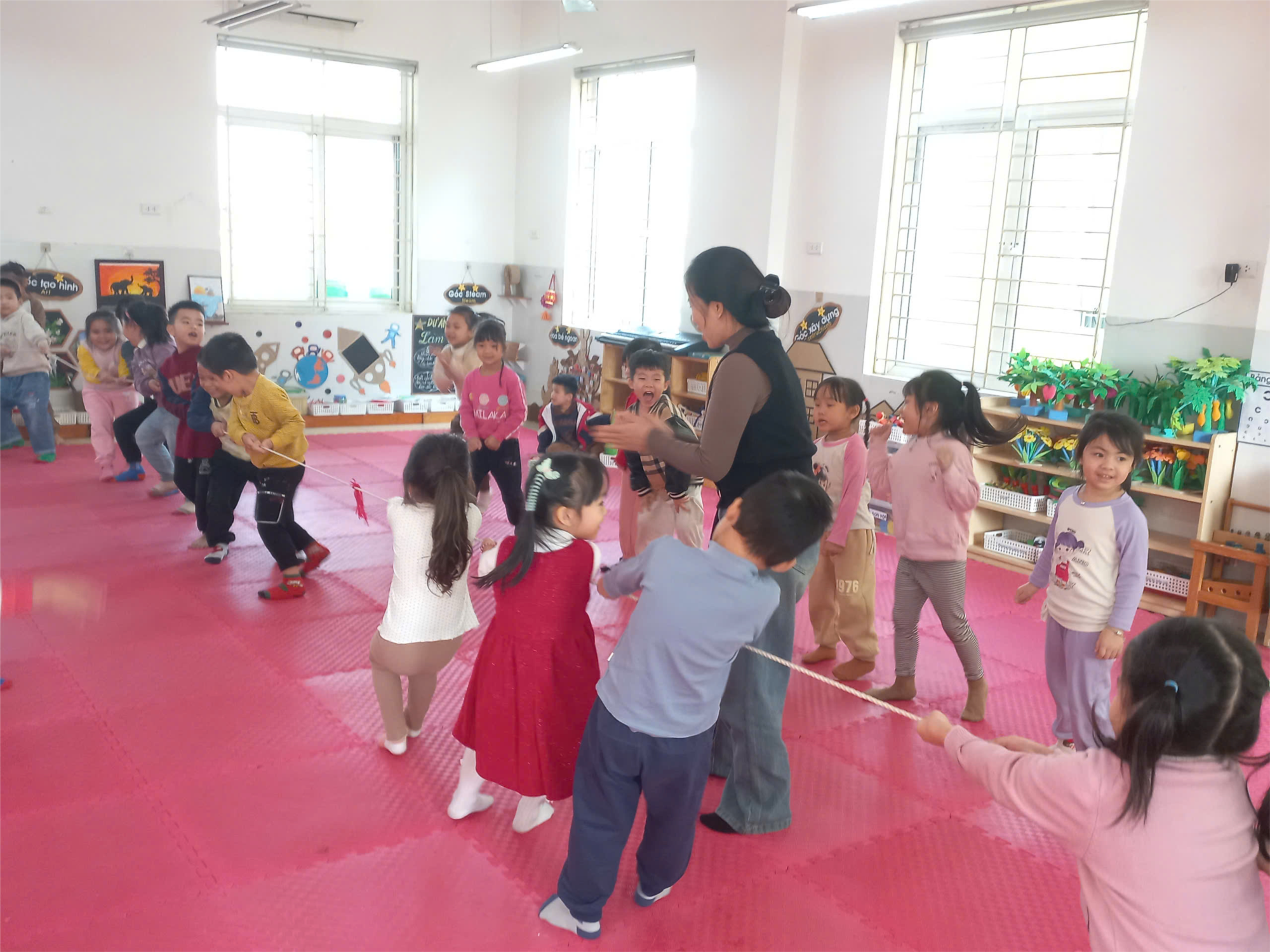 Giờ hoạt động chiều cũng rất quan trọng với các bé. Sau mỗi buổi học và tham gia các hoạt động buổi sáng. Các bé lớp MGL A1 đã được chơi một số trò chơi dân gian vào buổi chiều. Hôm nay các con đã được chơi trò chơi kéo co. Với sự đoàn kết, nhiệt tình các bé đã dùng hết sức mình để kéo co và cố gắng dành chiến thắng về cho đội của mình.