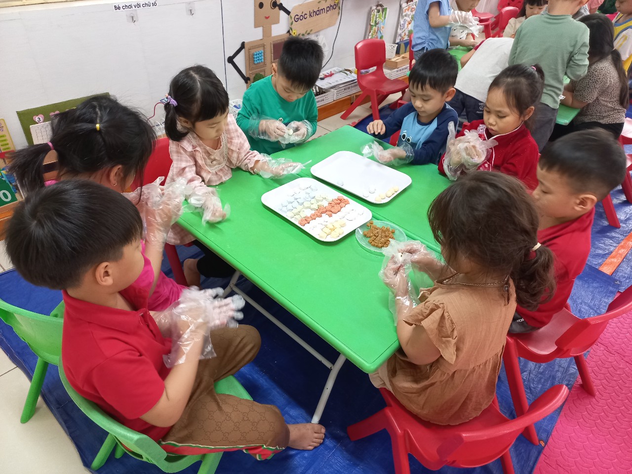 Sau giờ hoạt động chung, các con đã được tham gia chơi góc. Với những góc chơi phân vai, các con được thỏa sức nhập vai vào các công việc của các nghề khác nhau. Với góc học tập, các con đã được cùng nhau ôn lại kiến thức của những bài học. Các con tham gia rất vui chơi, đoàn kết.