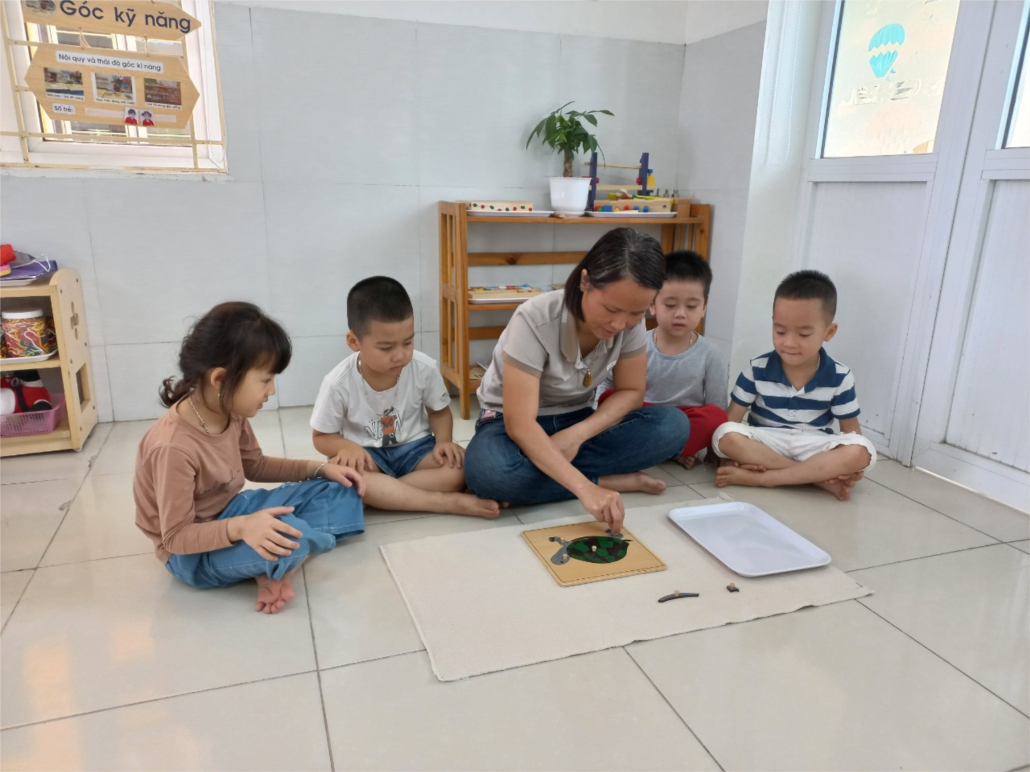 Chiều ngày 23/5/2022 tại lớp MGN B2 đã tổ chức dạy trẻ một số bài tập Montessori.
