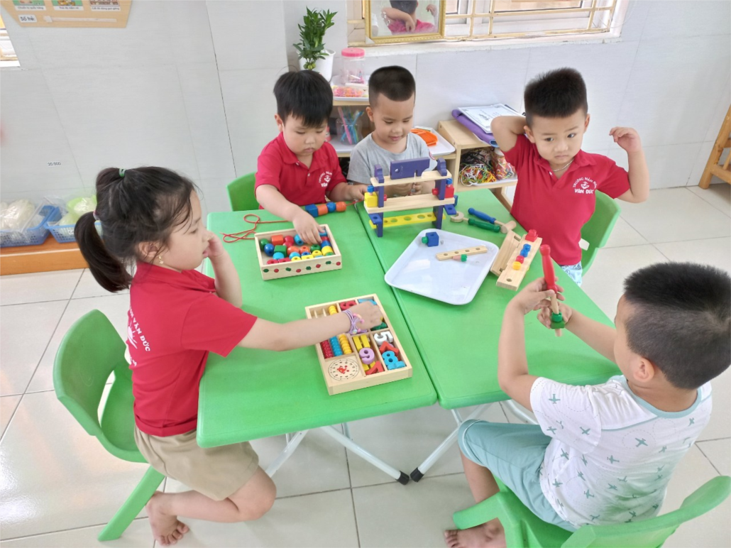Hoạt động góc là hoạt động mà trẻ vô cùng thích thú. Khi tham gia vào hoạt động trẻ tham gia chơi một cách say mê, nhất là khi trẻ được tự tay thực hành các kỹ năng cuộc sống trong góc kĩ năng, được chơi với các đồ dùng Montessori như vặn ốc vít, chơi bảng núm, sâu hạt, bảng chữ, bảng số....