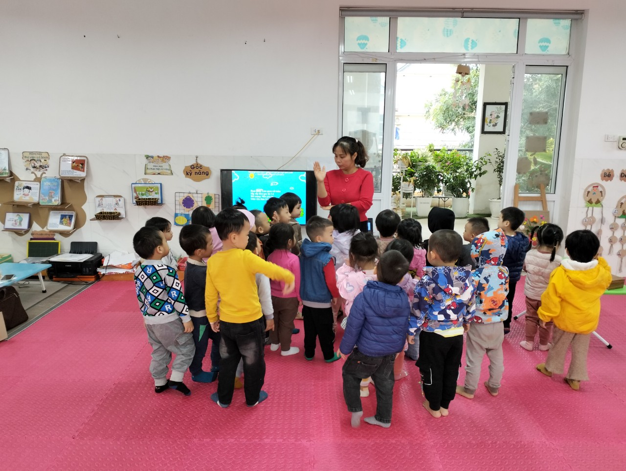 Sáng thứ 3 ngày 5 tháng 12 năm 2023, GVCN lớp MGBC3 tổ chức hoạt động LQVT: Dạy trẻ sắp xếp theo quy tắc 2 đối tượng ( Cô thợ may- thước đo) cho các con học sinh.