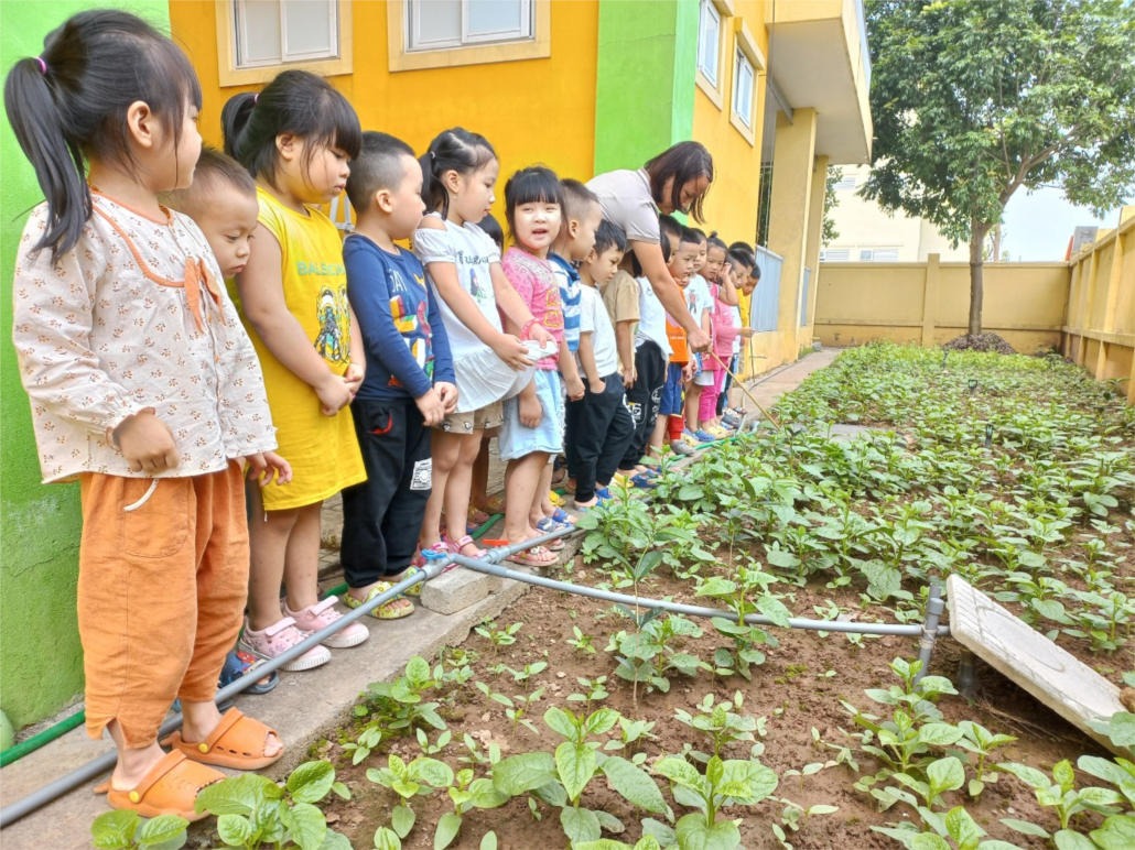 Sáng ngày 3/5/2022 Lớp MGN B2 tổ chức cho trẻ tham gia hoạt động ngoài trời: Quan sát vườn rau