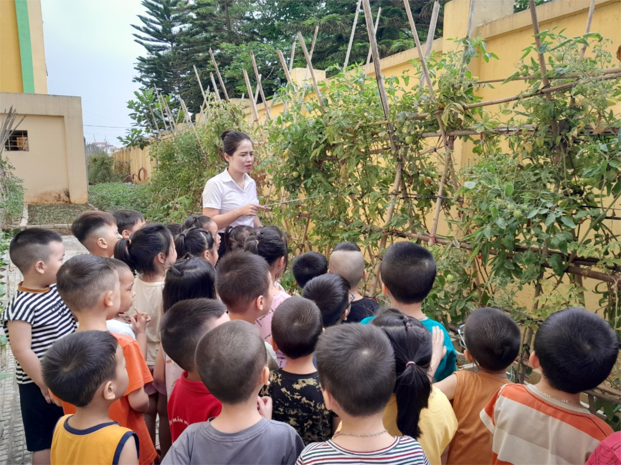 Thứ hai ngày 15 tháng 5 năm 2023, Lớp mẫu giáo nhỡ B1 tổ chức hoạt động ngoài trời " quan sát cây cà chua".