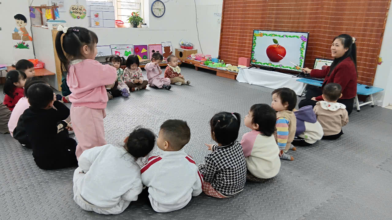 Sáng thứ 3 ngày 27 tháng 1 năm 2026, GVCN lớp NTD3 tổ chức hoạt động nhận biết tập nói: Quả táo, quả cam cho các con học sinh. Hoạt động nhận biết tập nói quả cam, quả táo giúp trẻ lớp NTD3 làm quen với các loại quả quen thuộc trong cuộc sống hằng ngày. Thông qua quan sát và trò chuyện, trẻ biết gọi đúng tên quả cam và quả táo. Trẻ được rèn luyện kỹ năng nghe, hiểu và trả lời các câu hỏi đơn giản của cô giáo. Hoạt động giúp trẻ mở rộng vốn từ như màu sắc, hình dạng và mùi vị của quả. Trẻ hứng thú khi được sờ, ngửi và quan sát trực tiếp các loại quả. Qua đó, trẻ mạnh dạn hơn khi giao tiếp với cô và các bạn. Hoạt động còn giúp phát triển khả năng chú ý và ghi nhớ có chủ định cho trẻ. Trẻ được rèn luyện khả năng phát âm rõ ràng, mạch lạc. Không khí giờ học vui tươi giúp trẻ tích cực tham gia hoạt động. Hoạt động nhận biết tập nói góp phần phát triển toàn diện ngôn ngữ và nhận thức cho trẻ 24–36 tháng tuổi.