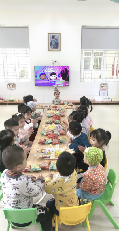 Tháng 4, các con được tham dự sinh nhật bạn Minh Quân, buổi tiệc sinh nhật thật vui khi các con được cùng nhau múa hát chúc mừng sinh nhật bạn, được các cô gợi ý những lời chúc gửi đến bạn và đặc biệt là được tham gia bữa tiệc liên hoan với thật nhiều những món ăn các con yêu thích.