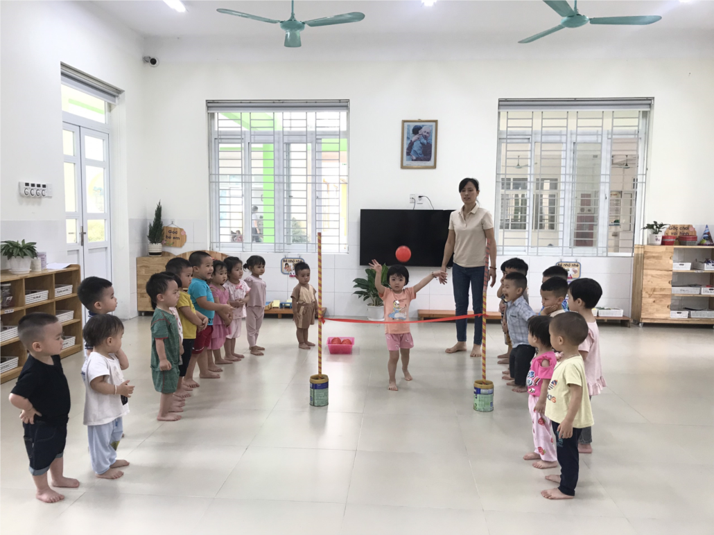 Tuy mới lần đầu tham gia vận động mới với nhiều bỡ ngỡ, vụng về nhưng với sự hướng dẫn, hỗ trợ của cô, bạn nào cũng đã thật cố gắng để thực hiện đúng vận động và sáng tạo một số trò chơi từ chính những quả bóng mà các cô chuẩn bị cho hoạt động thể chất này.