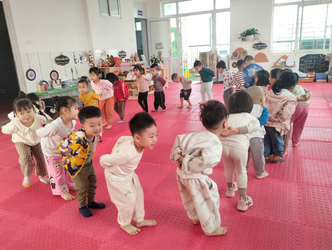 Hoạt động giáo dục thể chất không chỉ có trong hoạt động học mà còn được lồng luồn vào các hoạt động khác như thể dục sáng, các trò chơi vận động...mà còn giúp trẻ hoạt bát, nhanh nhẹn, tự tin, vững vàng trong từng bước đi, từng động tác bò, trườn, trèo, chạy, nhảy… nhằm hình thành, phát triển đầy đủ khả năng vận động của một con người, bên cạnh đó còn rèn luyện sự dẻo dai, phát triển các cơ bắp, hệ thần kinh, lanh tay, lẹ mắt, và phán đoán trước được những khó khăn khi đi, chạy, trèo, leo...