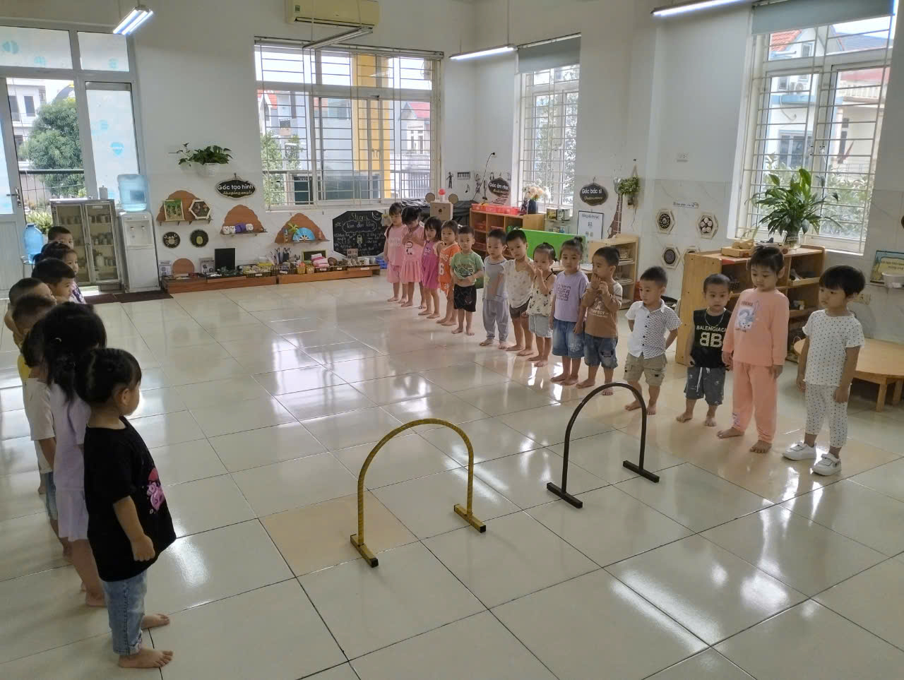 Sáng thứ 2, ngày 23 tháng 9 năm 2023 GVCN lớp MGBC3 tổ chức hoạt động thể dục: VĐCB: Bò chui qua cổng - TCVĐ: Chuyền bóng cho các con học sinh.