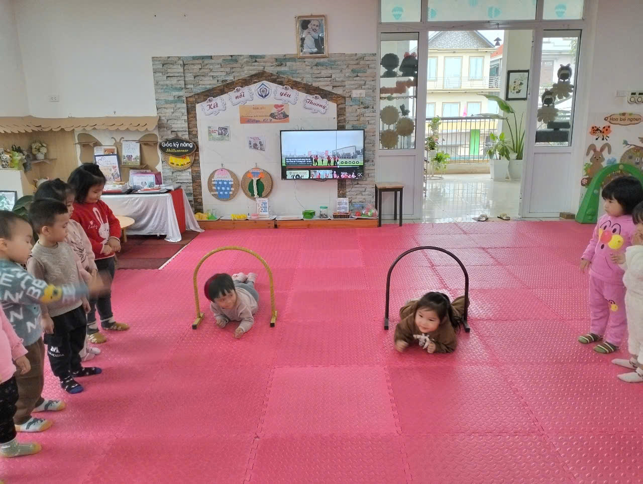 Sáng thứ 2 ngày 9 tháng 12 năm 2024, GVCN lớp MGBC3 tổ chức hoạt động thể dục: VĐCB: Trườn chui qua cổng - TCVĐ: Chuyền bóng cho các con học sinh.