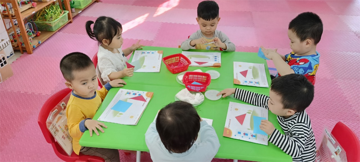 - Trẻ biết cách phết hồ vào mặt trái của hình, biết xây dựng bố cục bức tranh.