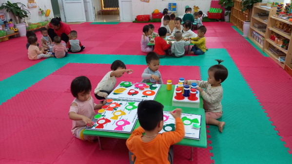 Thứ năm ngày 13 tháng 4 năm 2023. NTD3. Tổ chức hoạt động góc: 4 góc chơi: Góc chơi núm puze; góc bé chơi với màu; góc xếp hình; góc ghép nút. Qua giờ HĐG giúp trẻ phát triển về ngôn ngữ, nhận biết màu sắc, biết cách tháo ra lắp vào, chọn đúng hình để ghép vào tranh. Trẻ hứng thú tham gia các góc chơi. Khi chơi trẻ biết chia sẻ, đoàn kết khi chơi cùng các bạn.