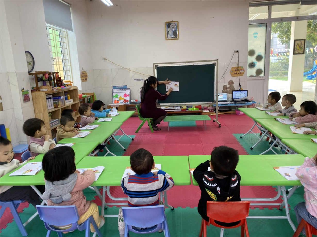 Thứ 5 ngày 29 tháng 12 năm 2023. Lớp NTD3. Tổ chức hoạt động học: Tạo hình: Vẽ đường về nhà. Qua giờ học giúp trẻ biết cách cầm bút bằng 3đầu ngón tay. Trẻ biết vẽ đường thẳng ngang từ bạn thỏ tới ngôi nhà. Rèn cho trẻ chọn đúng màu. Trẻ tích cực và hứng thú tham gia bài học. Trẻ biết giữ gìn đồ dùng đồ chơi. Trong giờ học trẻ biết giữ gìn sản phẩm sạch sẽ.