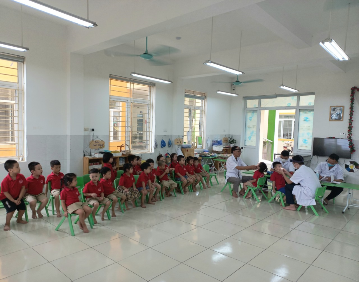 Sáng ngày 26/10 lớp MGN B2 phối hợp với trạm y tế xã tổ chức khám sức khỏe cho trẻ thành công. 100% trẻ ngoan phối hợp cùng các bác sĩ khám bệnh. Kết quả khám bệnh chủ yếu là các bệnh về răng miệng 8 cháu, một số con bị tai mũi họng 3 cháu, không có bệnh lý gì nghiêm trọng.