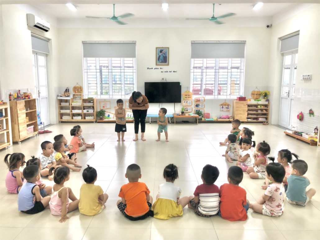 Sáng thứ ba ngày 5 tháng 7 lớp NTD2 rèn kỹ năng chào hỏi cho trẻ. Qua bài tập trẻ có nề nếp ngoan lễ phép chào hỏi khi đến lớp, có khách đến lớp, lúc ra về.