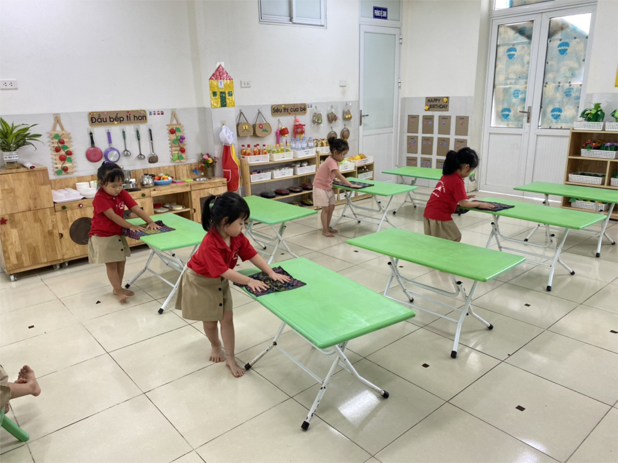 Thứ tư, ngày 20 tháng 9 năm 2023, Lớp mẫu giáo nhỡ B1 tổ chức hoạt động vệ sinh: Lau bàn ăn. Thông qua hoạt động trẻ có kĩ năng lau bàn tốt, biết giữ gìn vệ sinh trong ăn uống. Trẻ hứng thú khi được tham gia vào hoạt động vệ sinh.
