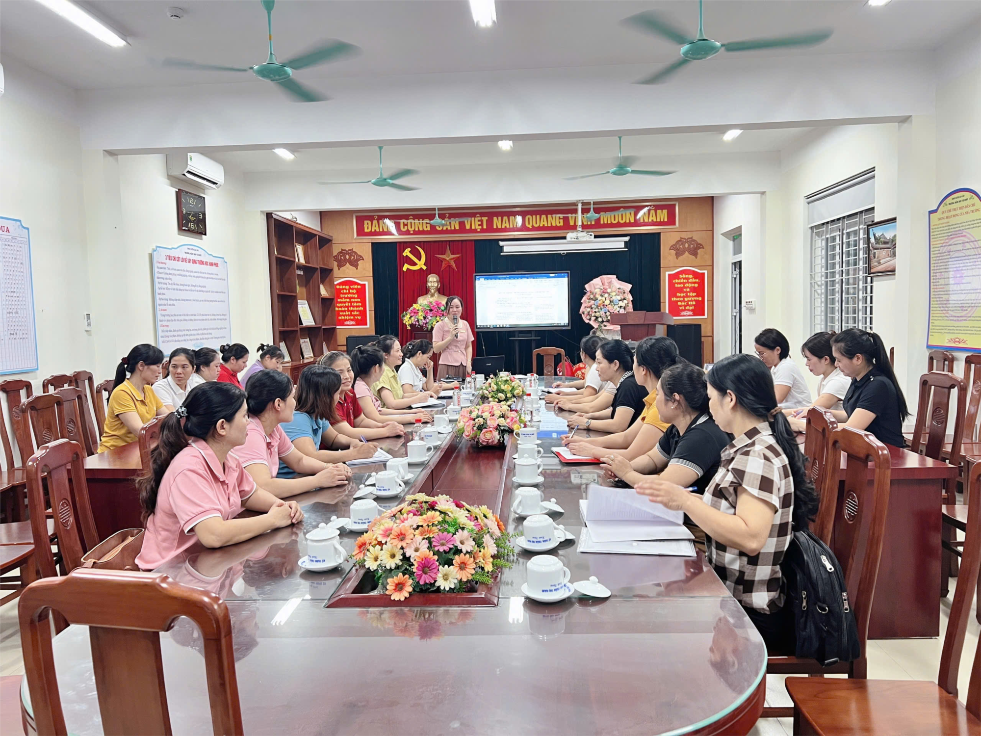 Bên cạnh đó trong cuộc họp, đồng chí PHT phụ trách chuyên môn cũng đã triển khai các nhiệm vụ nổi bật về chuyên môn trong năm học để các giáo viên cùng nắm rõ và có kế hoạch thực hiện. Dưới đây là một số hình ảnh trong cuộc họp.