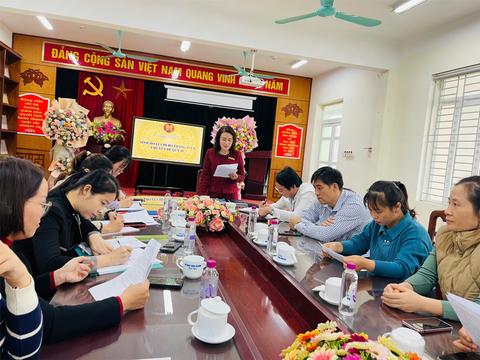 Hôm nay, Chiều ngày 3/ 11/ 2025, chi bộ trường MN Văn Đức tổ chức sinh hoạt chi bộ tháng 11 và sinh hoạt chuyên đề quý IV/2025.