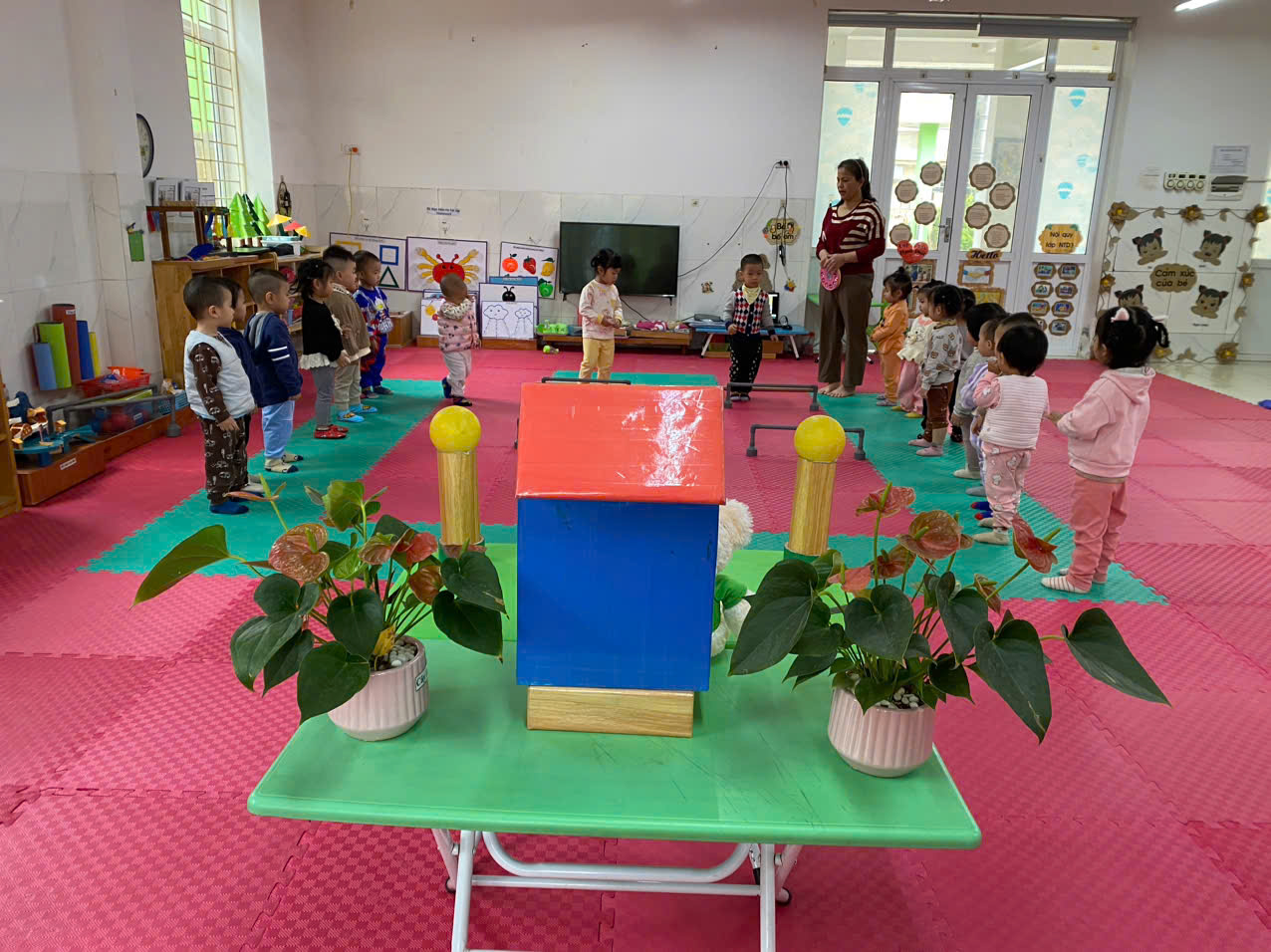 Thứ 4 ngày 04 tháng 12 năm 2024. Lớp. NTD3. Tổ chức hoạt động học: Vận động: Bước qua gậy kê cao. Thông qua giờ vận động giúp trẻ phát triển thể chất cơ thể khoẻ mạnh. Rèn cho trẻ có kỹ năng bước qua gậy kê cao không chạm vào vật cản. giáo dục trẻ khi tập phải đi từ từ không sô đẩy nhau.