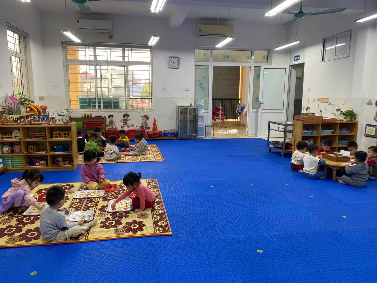 Thứ 4 ngày 25 tháng 2 năm 2026. Lớp. NTD4. Tổ chức hoạt động góc: Góc hoạt động với đồ vật; góc tạo hình; góc vận động. Qua giờ hoạt động góc giúp trẻ phát triển tư duy, khéo léo của đôi tay, biết chọn màu tô tranh, cách cầm bút, phát triển ngôn ngữ khi trẻ giao tiếp. Khi chơi xong trẻ biết cất dọn đồ chơi đúng nơi quy định.