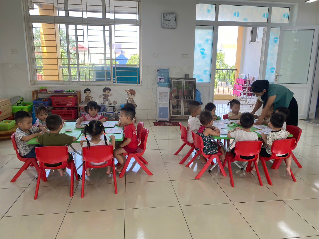 Thứ 5 ngày 9 tháng 10 năm 2025. Lớp.NTD4. Tổ chức hoạt động học: Tạo hình: In ngón tay tạo thành cánh hoa. Thông qua giờ học giúp trẻ biết tên gọi, màu sắc của bức tranh. Dạy trẻ cách chấm màu nước bằng ngón tay trỏ của bàn tay phải. Dạy trẻ chấm màu tạo thành cánh hoa. Trong khi làm các con không được bôi bẩn ra bàn và quần áo mà phải lau tay vào khăn.